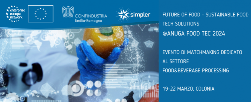 Nell’ambito delle attività della rete Enterprise Europe Network , Confindustria Emilia-Romagna promuove l’evento di matchmaking “Future of Food – Sustainable FoodTech Solutions” che si svolgerà all’interno della fiera Anuga Food Tec di Colonia dal 19 al 22 marzo 2024.