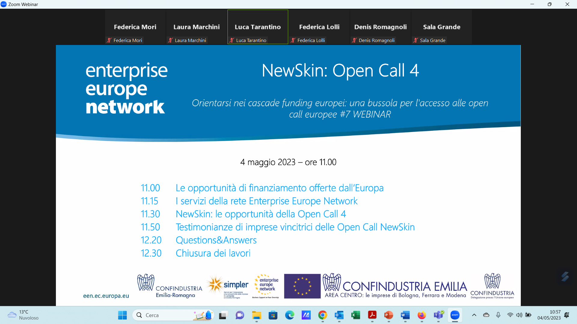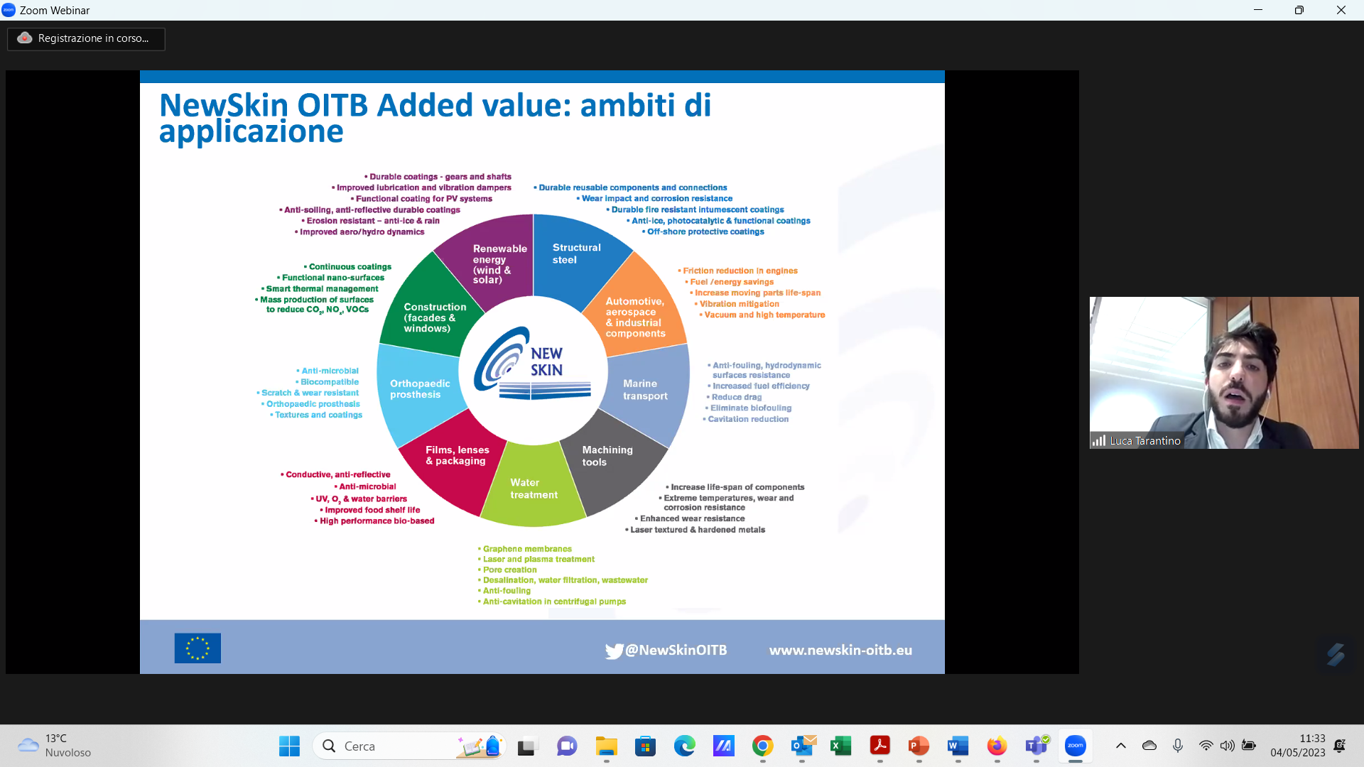 Il 4 maggio 2023 si è svolto il webinar “NewSkin: Open Call 4” dedicato a presentare le opportunità del progetto NewSkin che fornisce tecnologie, risorse e servizi necessari per accelerare l’adozione industriale di “nano-tecnologie di superficie” di avanguardia.
