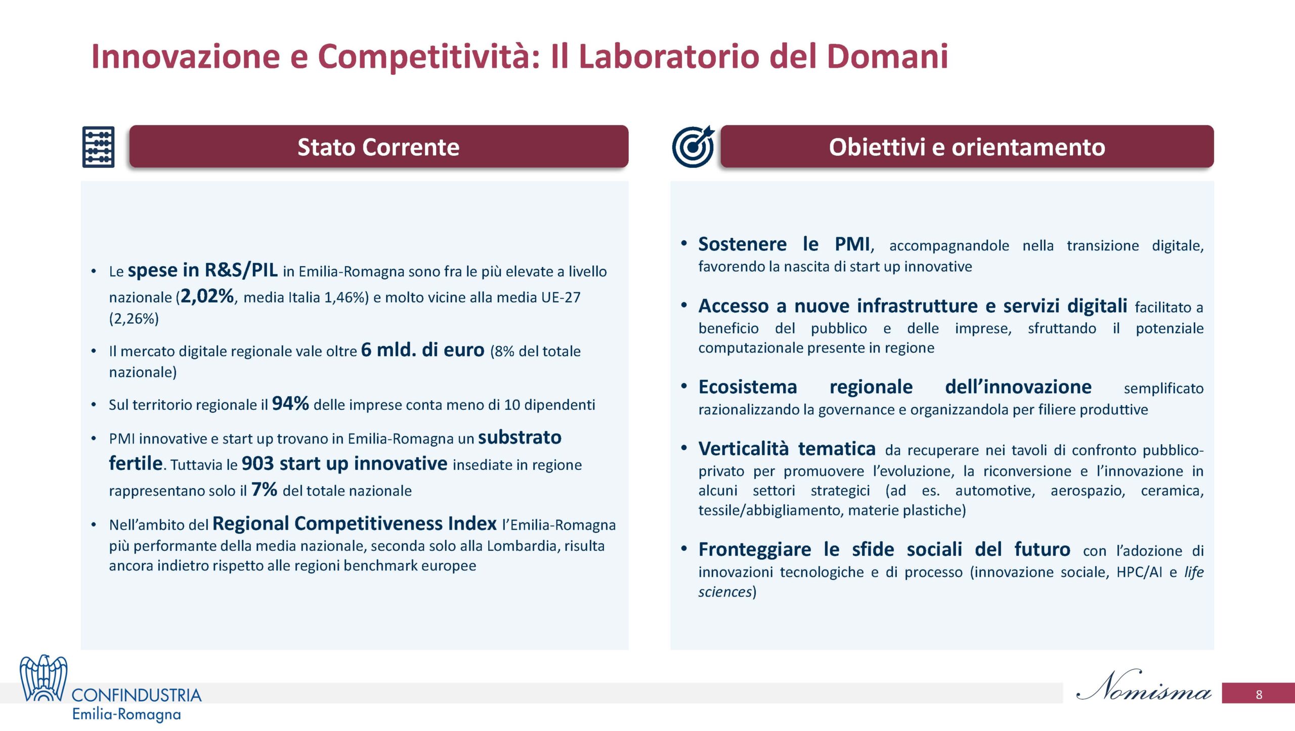 Circa il tema Innovazione e competitività gli obiettivi in sintesi sono: