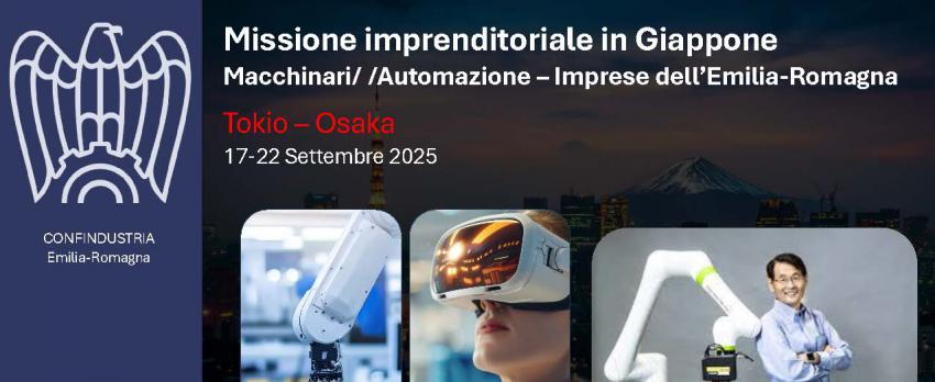 In occasione di Expo Osaka 2025, il sistema Confindustria Emilia-Romagna organizza una missione in Giappone dal 17 al 22 settembre 2025, in collaborazione con la Regione Emilia-Romagna.