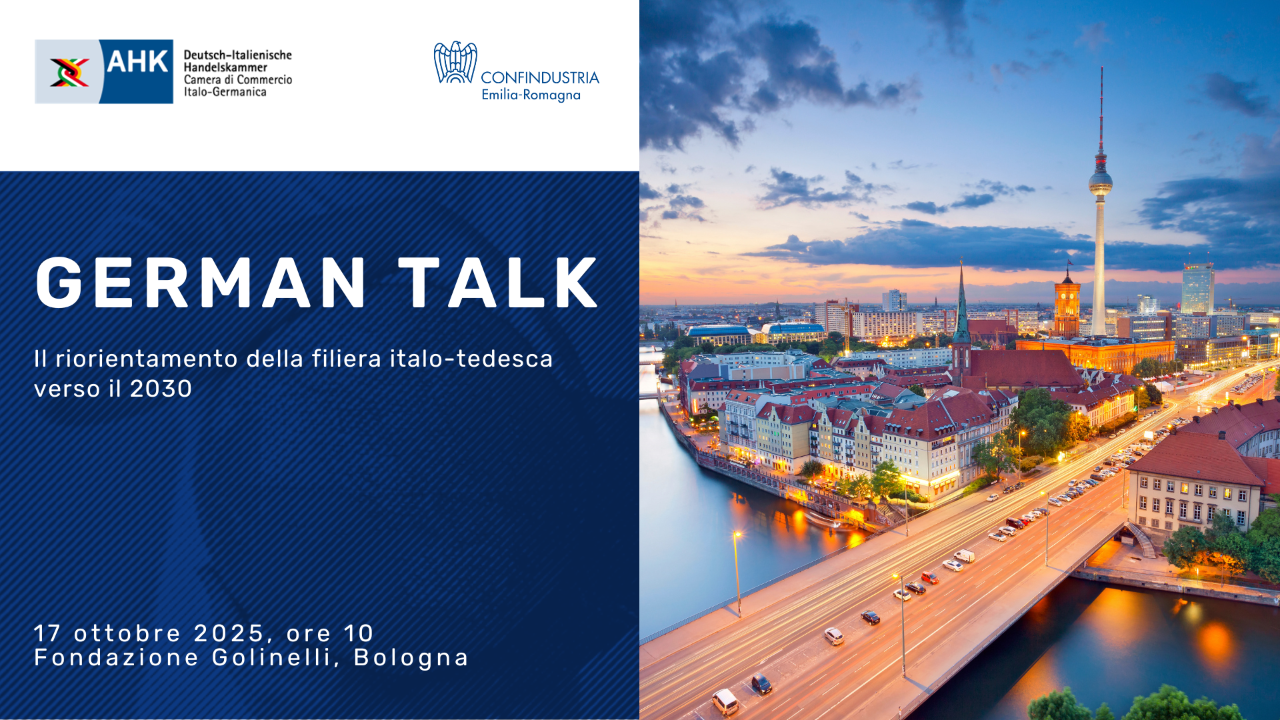 L’incontro, che organizziamo in collaborazione con AHK Italien-Camera di Commercio Italo-Germanica, è di particolare interesse per le imprese in quanto sarà l’occasione per approfondire nuovi driver di sviluppo legati alla partnership economica tra Italia e Germania, in un contesto di cambiamento del commercio estero e della situazione geopolitica internazionale, e il loro possibile impatto sulle filiere della nostra regione.