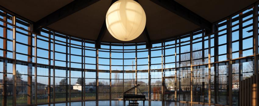 Il Centro, che ha una metratura complessiva di 850 metri quadrati, offre ai cittadini di Bondeno e delle aree circostanti un nuovo spazio utile alla popolazione: due edifici cilindrici che si ispirano alle forme del territorio rurale tipiche della zona, come quelle dei silos o delle balle di fieno. L’intento è mettere a disposizione non un edificio ”calato dall’alto” ed estraneo al territorio, ma che nasca dai costumi del luogo, riconoscibile nei suoi elementi caratterizzanti.