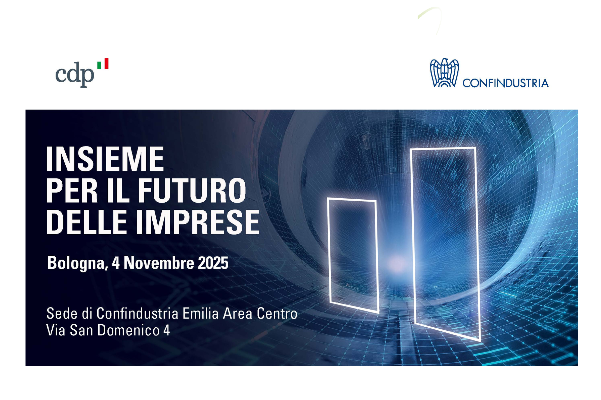 Martedì 4 novembre 2025 si svolge a Bologna l’incontro “Insieme per il futuro delle imprese“ promosso da Cassa Depositi e Prestiti e Confindustria, presso la sede di Confindustria Emilia Area Centro, in via San Domenico 4, con inizio alle ore 14.30.