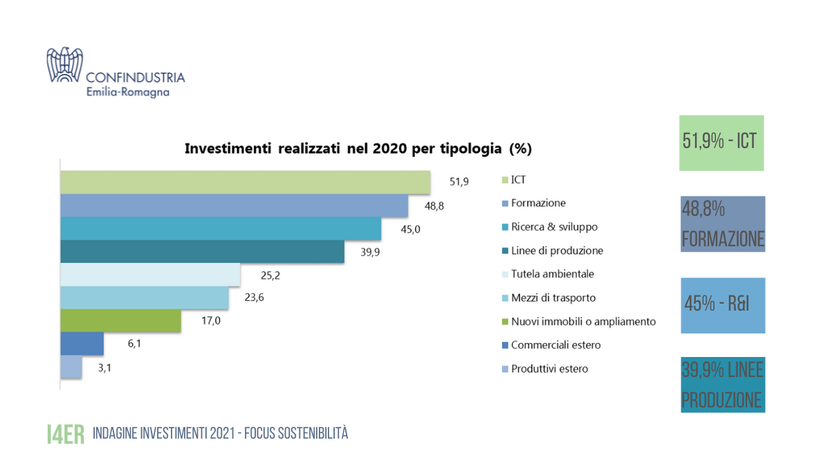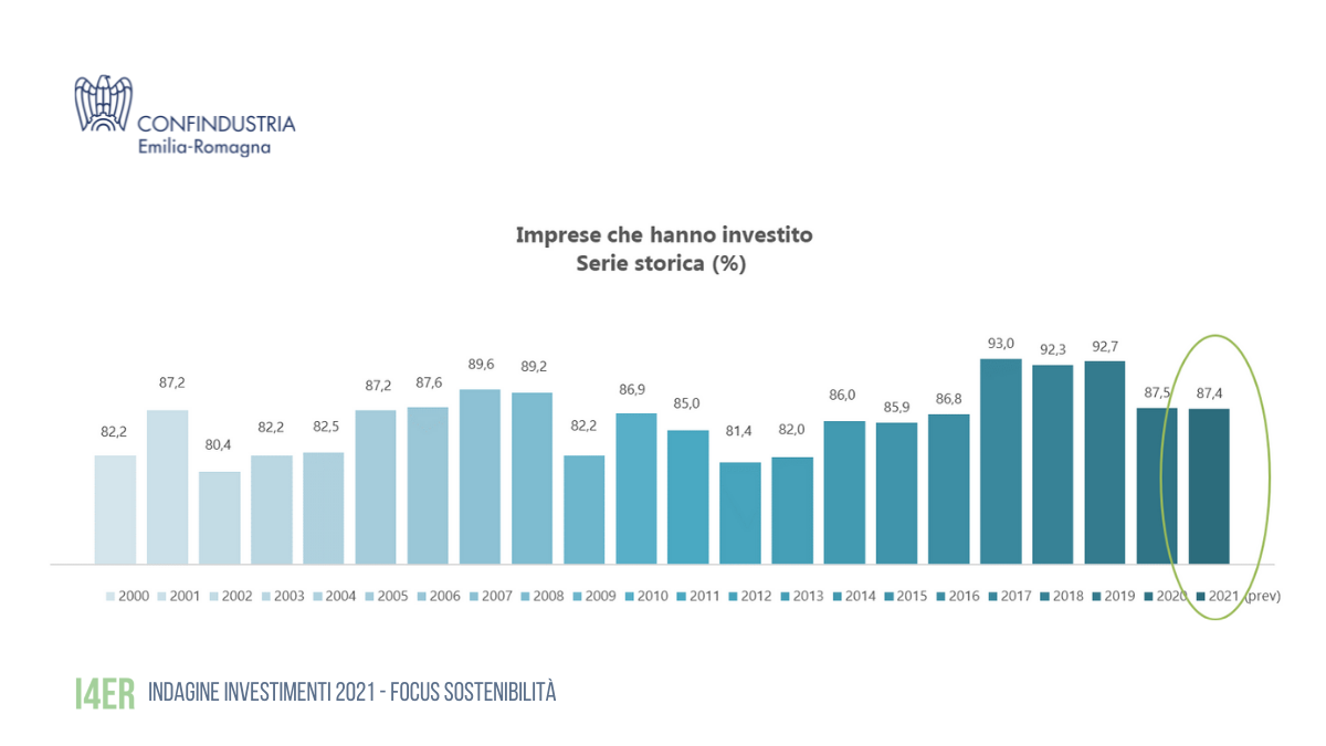 Bologna, 18 maggio 2021 – L’Indagine sugli investimenti delle imprese industriali dell’Emilia-Romagna, realizzata da Confindustria Emilia-Romagna insieme alle Associazioni e Unioni Industriali della regione, evidenzia una forte attitudine al cambiamento del sistema industriale dell’Emilia-Romagna, che ha intrapreso un percorso di sviluppo e crescita sempre più all’insegna della sostenibilità.