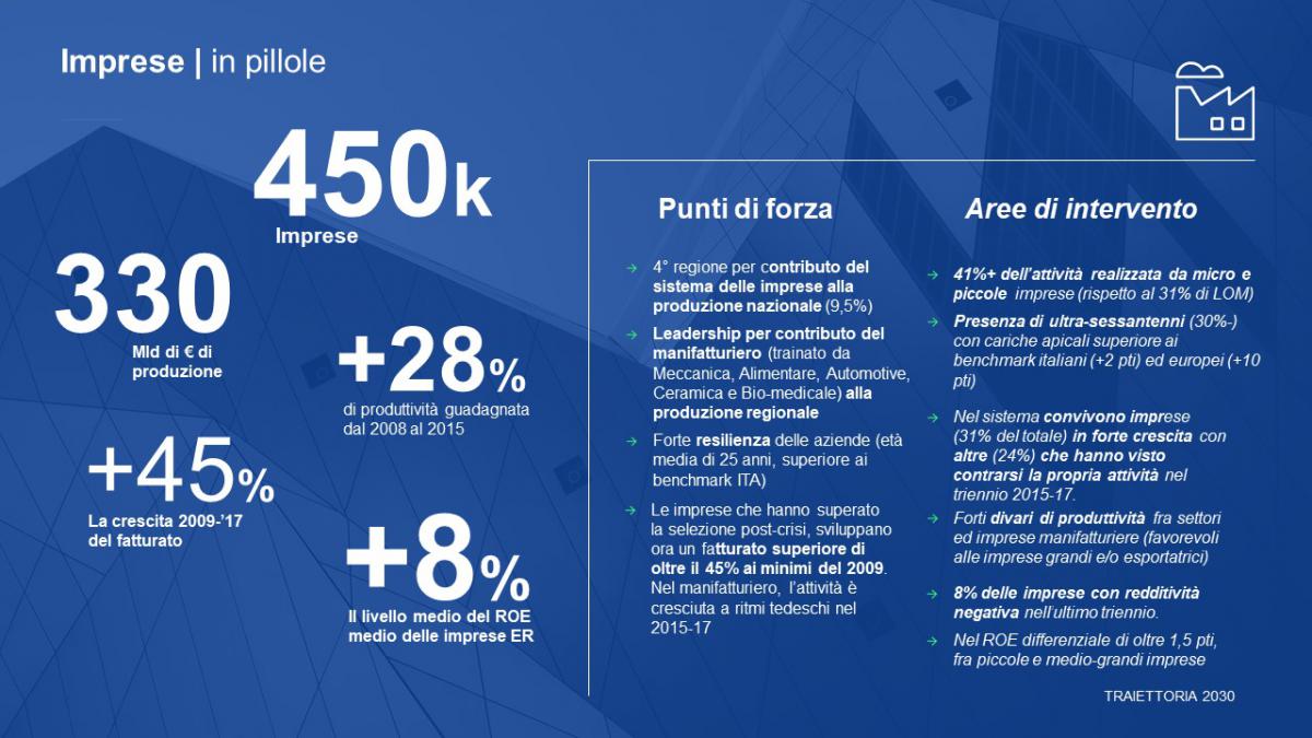 - Leadership per contributo manifatturiero alla produzione regionale e più elevata produttività a livello nazionale.