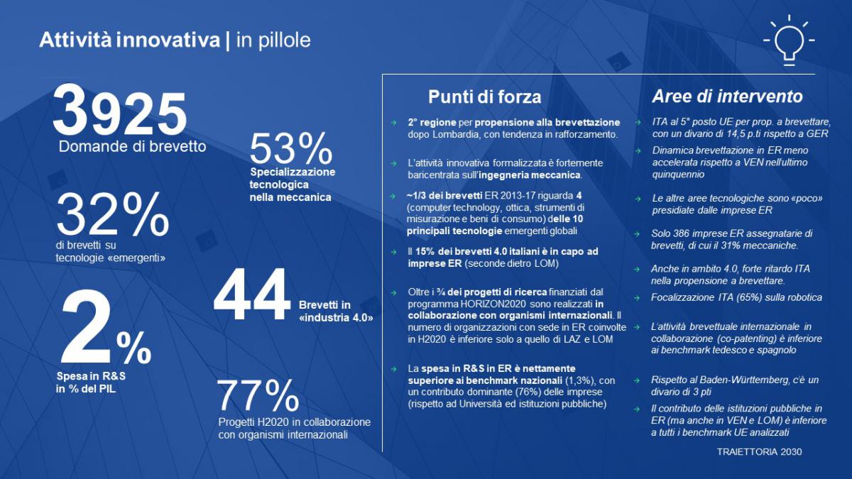 - Leader in Italia per spesa in ricerca e innovazione (2% Ricerca e Sviluppo sul PIL).